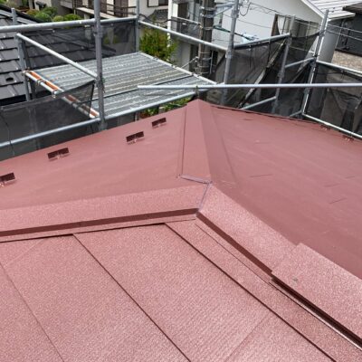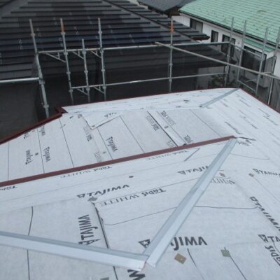 高圧洗浄で屋根の汚れやコケをしっかり落とし、防水シートを敷いたうえに新しい金属屋根を施工します。仕上がりは鮮やかで、耐久性や防水性もアップ。屋根の色もお選びいただけます。