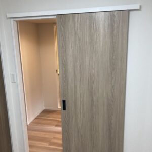 暗い玄関前を明るくするために、明るいブラウンで塗装。