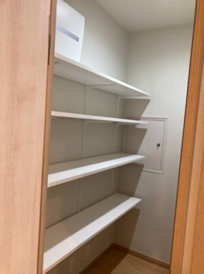 玄関横には備品など細かいものを置けるような収納を